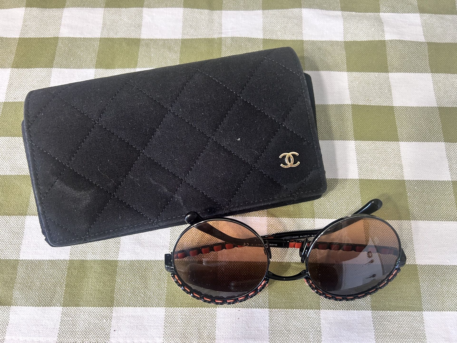 Chanel Round Orange Leather Sunglasses