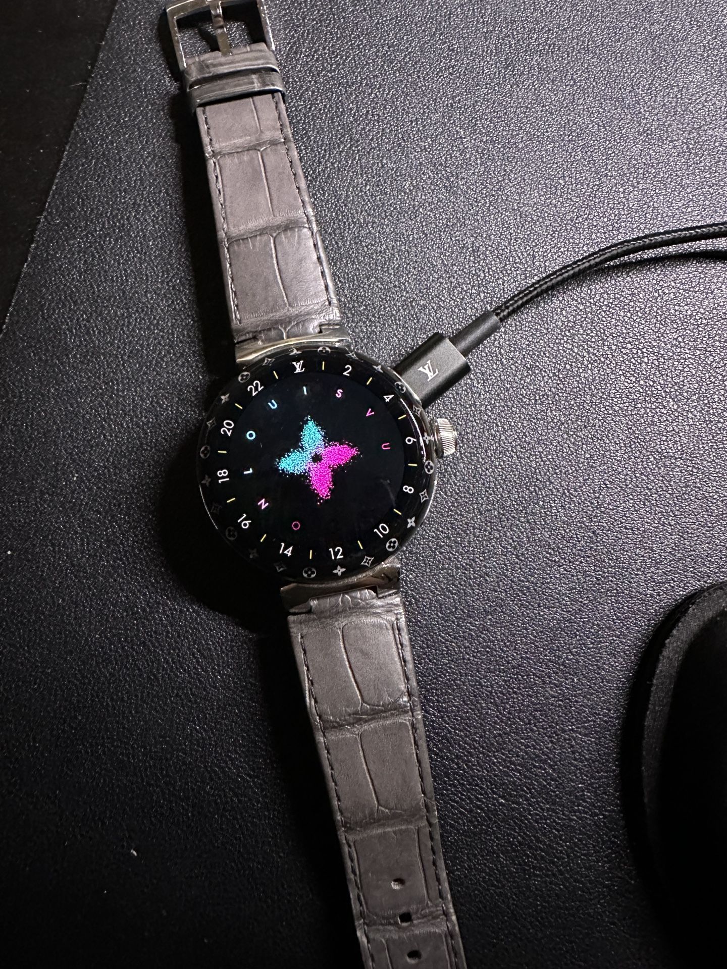 Louis Vuitton Tambour Horizon watch. Watch bands are dark grey alligator. Watch was barely ever worn. Watch uses the Wear OS app. Unfortunately do not have original box or paper work (reflected in price). also includes a charger.