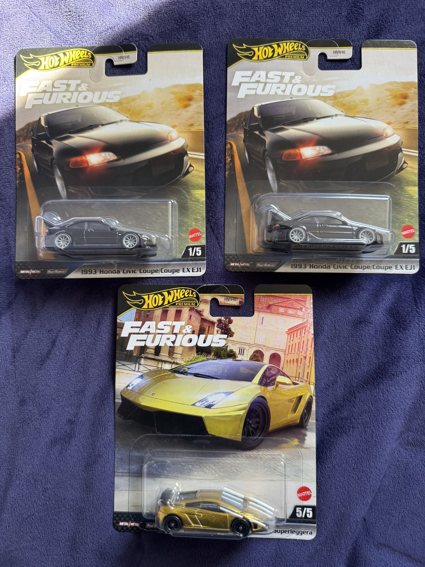 Hot Wheels Premium Fast & Furious Lot Of 3 2x 1993 Honda Civic Coupe EXEJ1 and 1x Lamborghini