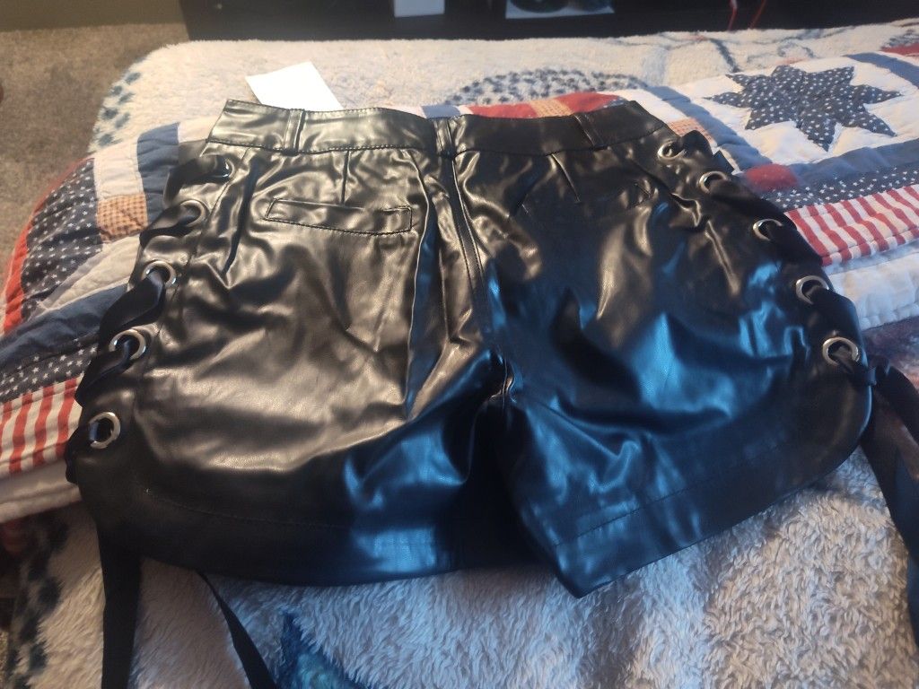 Ramisu Black Leather Shorts Small Sz For Females