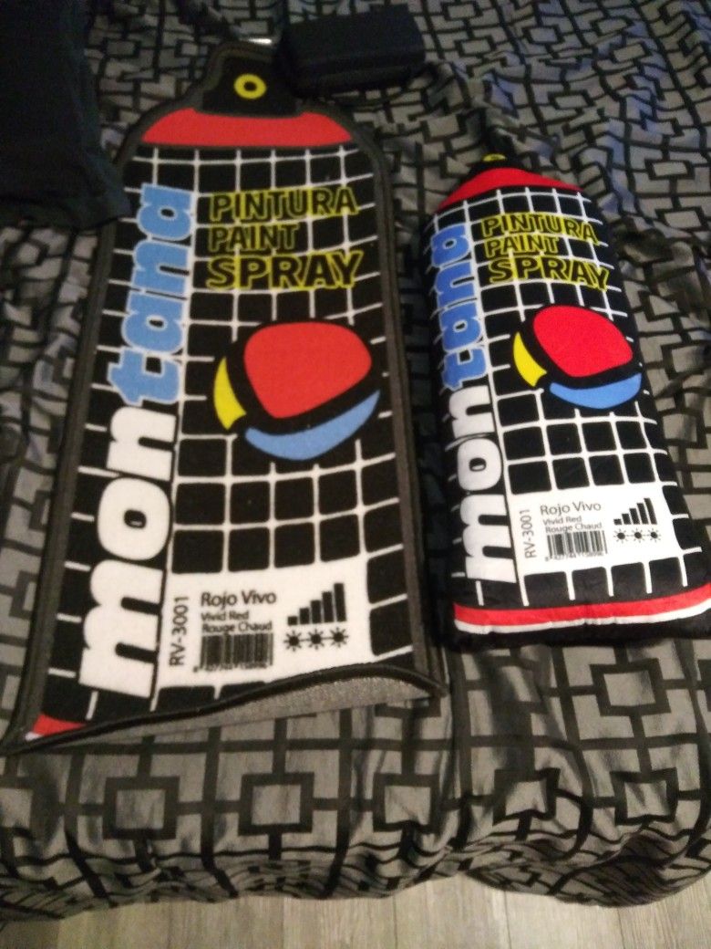 New carpet or rug and pillow OG Montana spray paint both new price is for both