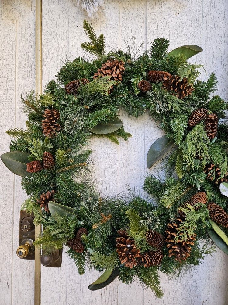 32" christmas wreath in great condition, like new. It has a on/off/timer button and a clear/multicolor light setting. pick up only!