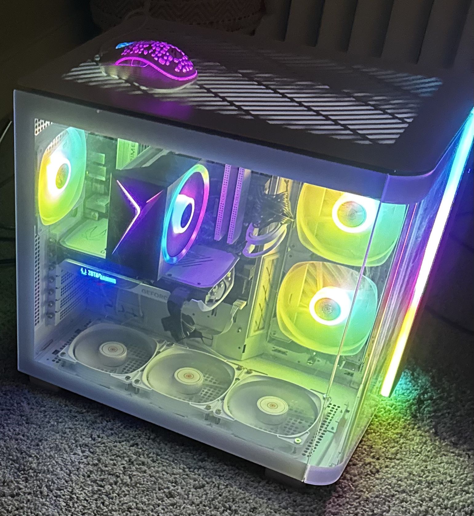 Dm me for more pictures! Looking to Trade my fully-built white RGB Gaming PC for a MacBook Pro! Super clean setup, amazing airflow, runs ANY game on max graphics or editing software. Specs: • CPU: (AMD Ryzen 7 7700 8-core processor) • GPU: (NVIDIA GeForce RTX 4070 Super) • RAM: (16gb) • Storage: (1TB) • RGB AIO cooler + full RGB fans • Clean cable management • Looking for: • MacBook Pro (14” or 16”) • 16GB or 32GB RAM • 512GB+ SSD • Good condition Everything included Vertical Monitor 180hz Horizontal monitor 240hz Mouse Mousepad Shure mic and mic stand Face Cam I will throw in the desk and chair for free if you want! Perfect PC for gaming, editing, streaming, or productivity. Just switching to a portable Apple setup for business. DM if you want to trade or offer cash.