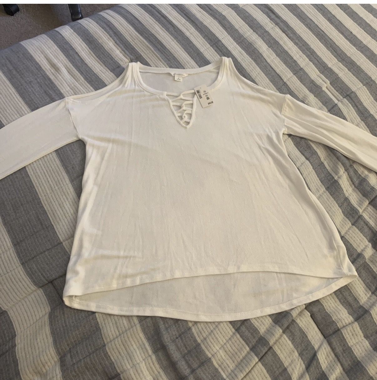 Women’s Aeropostale Size Medium Cold Shoulder Ivory Knit Top Sweater Shirt Brand New