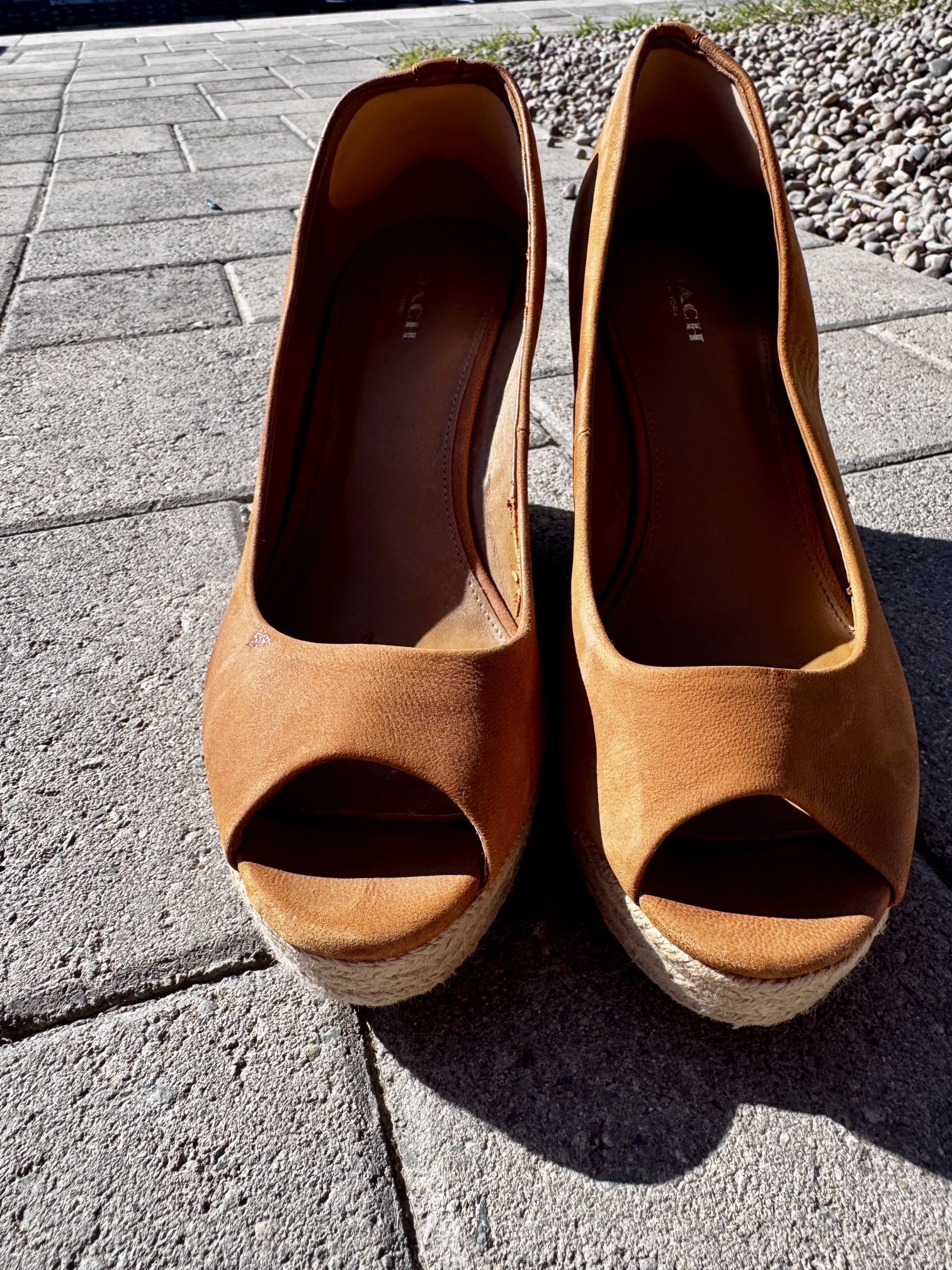 Coach Cognac Leather wedge Sandal 8.5