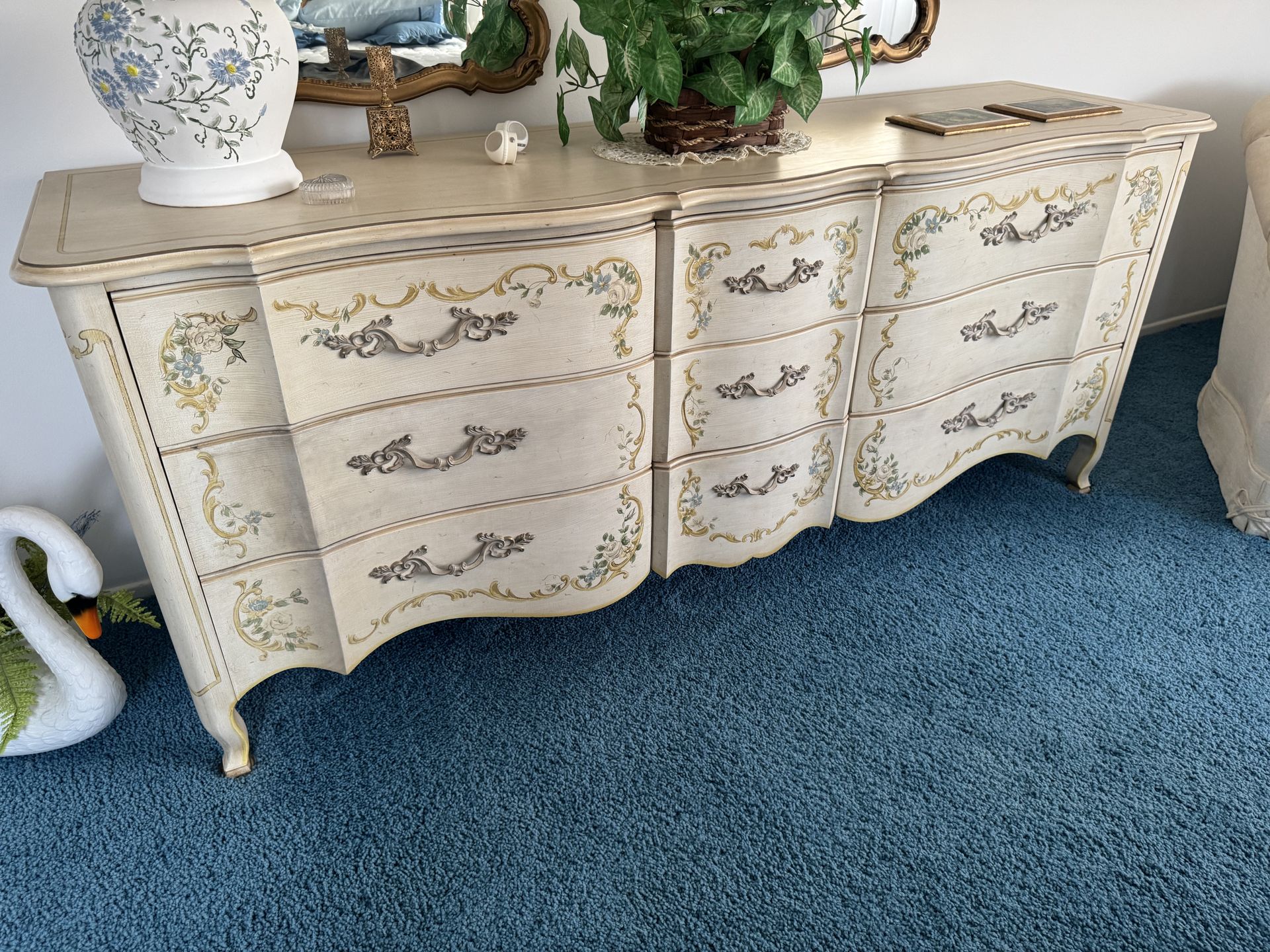 vintage Drexel Heritage French Provincial Cream Long Dresser