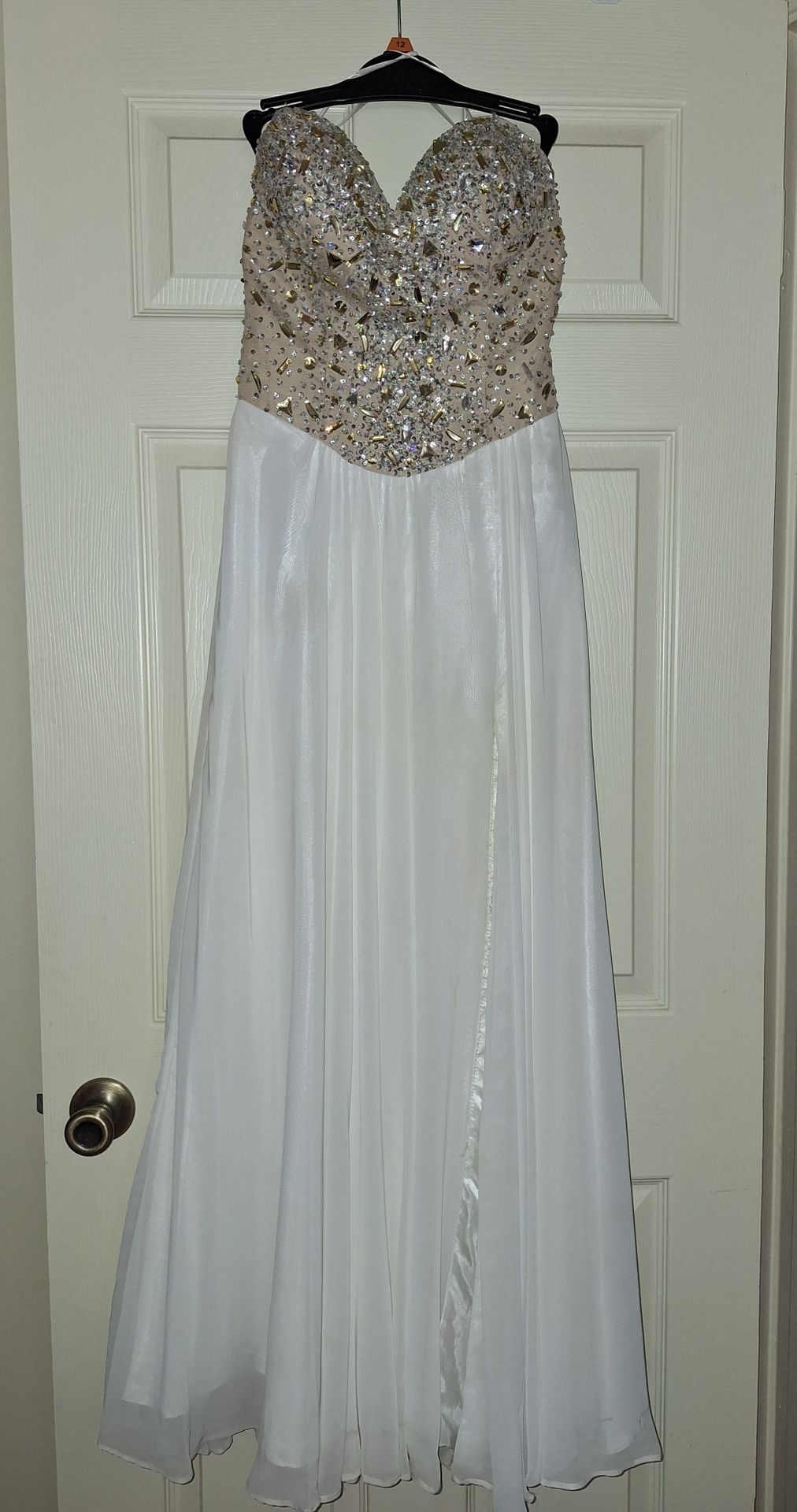 White and gold beaded prom dress