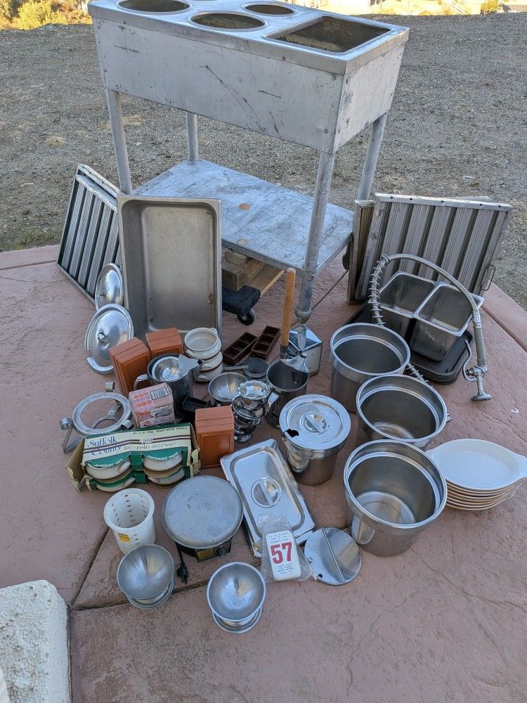 Steam table stainless steel pans and other assorted items . For someone starting a business.