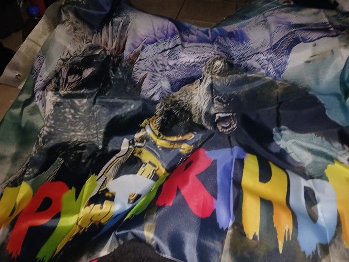Kingkong And Godzilla Drop Back Birthday Banner