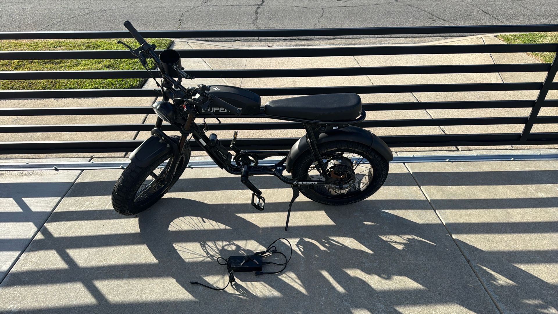 Super73 S2 Black. Rarely used. 110 total mileage! With keys and lock. Attached cup holder and will give an extra motocross handlebar.