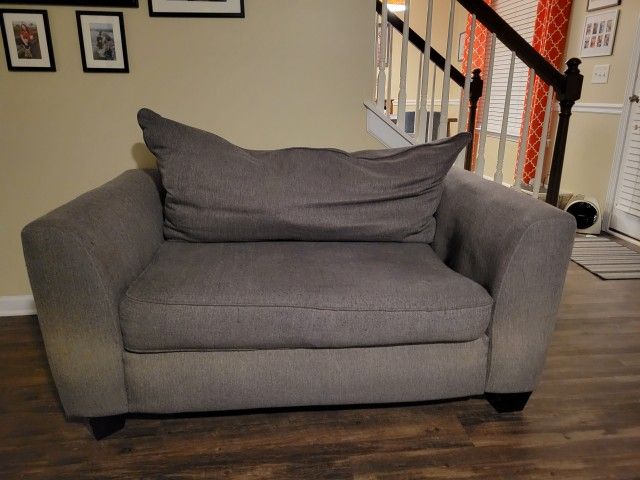 Small sofa with pull out sleeper. Love seat size. Comes from smoke free home. I have been told there is a small dip on the left sitting side but I don't really notice. Price is not firm.