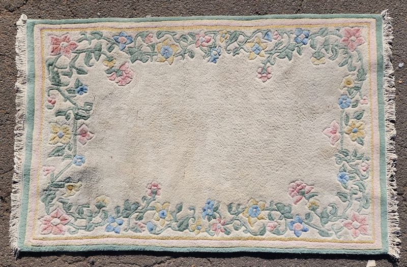 Elegant Ethan Allen Hand-Knotted Wool Area Rug - Pristine Pastel Floral, 76"x46"