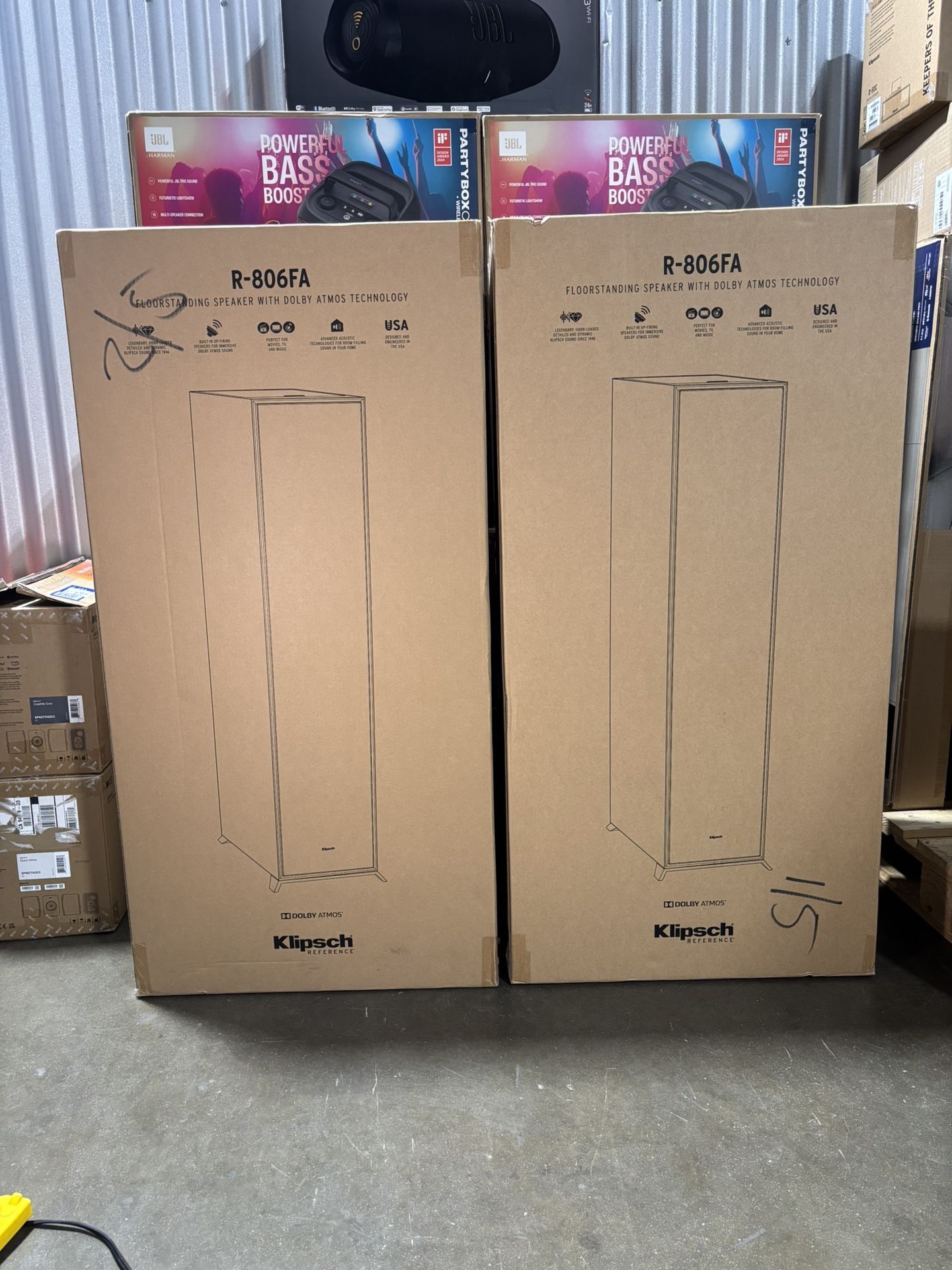⚡ NEW, VERIFIED, EVERYTHING INCLUDED IN BOX ⚡ READY FOR PICK UP ⚡ MESSAGE ME FOR ANY QUESTIONS ⚡ Se Habla Español, AS WELL ⸻ FEATURES & SPECS— • Complete Klipsch Reference Dolby Atmos Theater System — A fully matched speaker package engineered to deliver powerful, immersive home-cinema sound with true height effects. • R-806FA Dolby Atmos Floorstanding Towers (Front L/R) — Each tower includes built-in up-firing height speakers that create overhead Dolby Atmos effects without ceiling installation. • R-50C Reference Center Channel Speaker — Dedicated center channel designed for crystal-clear dialogue and precise vocal reproduction during movies and TV. • R-40M Reference Monitor Speakers (Surrounds) — Compact, high-efficiency bookshelf speakers deliver accurate rear surround effects with excellent clarity. • Dual 8” Spun-Copper IMG Woofers (Per Tower) — Produces deep, controlled bass and rich midrange with minimal distortion. • 1” Aluminum LTS Tweeters with Tractrix® Horns — Signature Klipsch horn-loaded design provides crisp highs, wide dispersion, and high efficiency. • Integrated Dolby Atmos Elevation Drivers — Up-firing speakers reflect sound off the ceiling to create immersive 3D audio above the listener. • High-Efficiency Reference Design — Plays loud and clean with less amplifier power compared to traditional speakers. • Wide Frequency Response — Balanced performance ideal for movies, immersive gaming, and high-fidelity music listening. • Premium MDF Cabinet Construction — Rigid, acoustically tuned enclosures minimize vibration and enhance sound accuracy. • Matched Klipsch Reference Styling — Iconic copper woofers and sleek black finish for a bold, professional theater look. • Expandable System Ready — Easily add a Klipsch powered subwoofer for a complete 5.1.2 Dolby Atmos setup. • Perfect For: Dedicated home theaters, large living rooms, Dolby Atmos movie setups, immersive gaming, and audiophile systems. ⸻ SYSTEM COMPONENTS INCLUDED— • (2) Klipsch R-806FA Dolby Atmos Floorstanding Tower Speakers • (1) Klipsch R-50C Reference Center Channel Speaker • (2) Klipsch R-40M Reference Monitor / Surround Speakers • (Subwoofer optional — can be added separately) ⸻ PERFORMANCE DETAILS— • Dolby Atmos Capability: Up to 5.0.2 • Speaker Type: Passive Klipsch Reference Series • Sensitivity: High-efficiency design (loud, clean output with less power) • Recommended Use: Front stage, surrounds, and height channels in Atmos systems ⸻ DIMENSIONS (APPROX.)— • R-806FA Towers: 43.1” H × 10.9” W × 17.5” D • R-50C Center: 7.3” H × 18.8” W × 7.6” D • R-40M Surrounds: 11.3” H × 5.7” W × 7.9” D