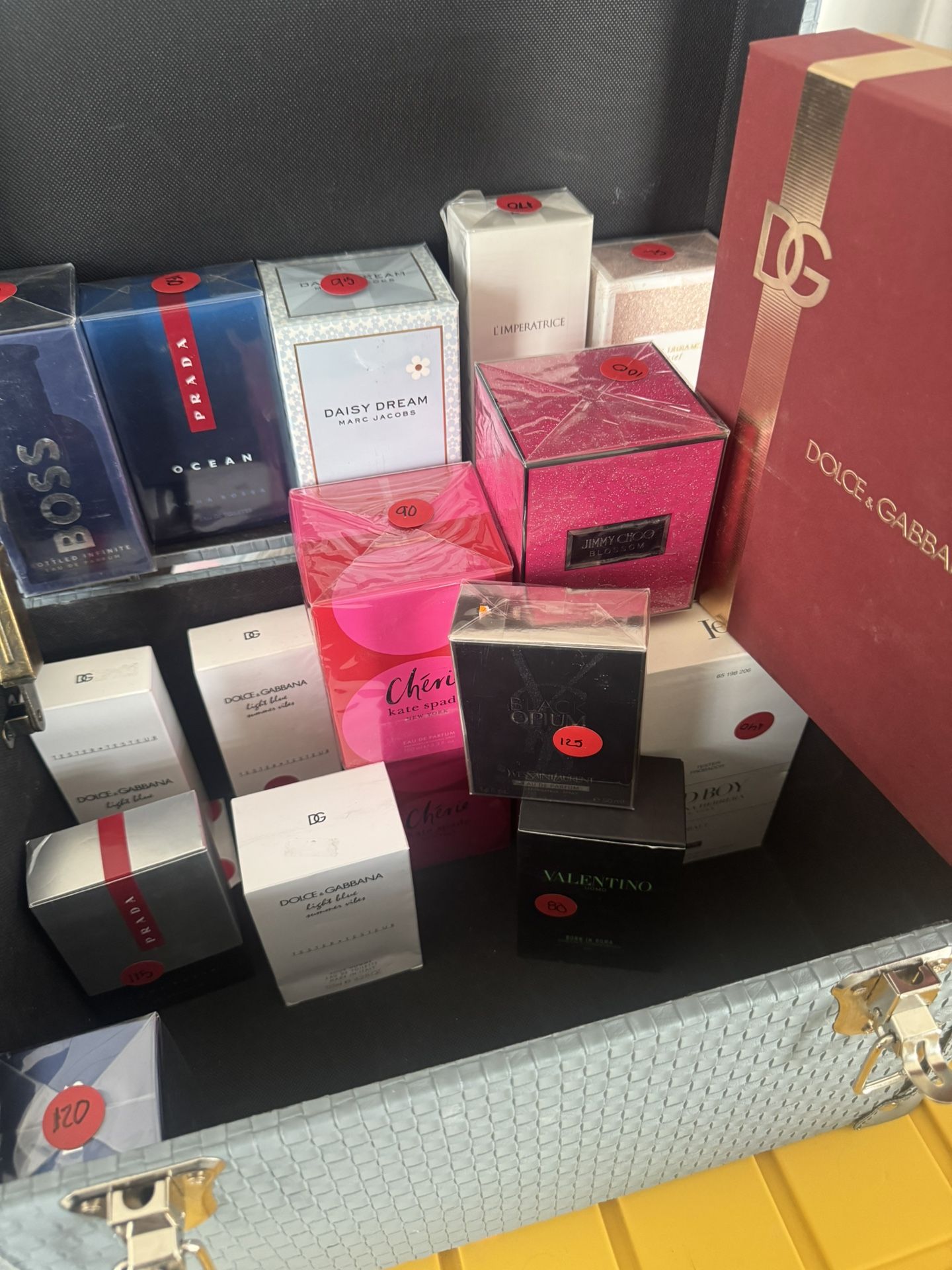 Dolce and Gabbana summer vibes 4.2 $ 140 Dolce and Gabbana king π 3.3 $150 gift set lotion aftershave Valentino green born in Roma 3.3 80 Prada ocean $120 Boss infinite parfum $120 Coach $75 Jimmy choo $100 Kate spade $90 Dolce and Gabbana women light blue $100