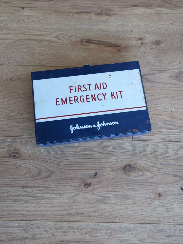 Johnson and Johnson. Mostly original items inside. $35 It's gotta go, make me an offer.