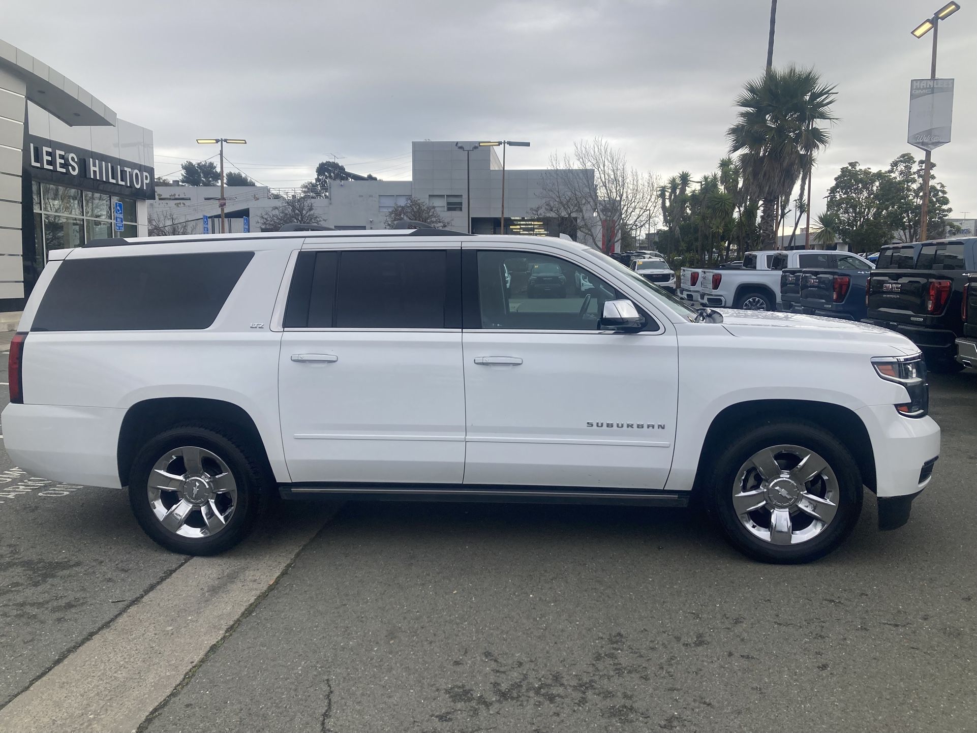 For Sale By Hanlees Hilltop GMC Please ask for Paul 2016 Chevrolet Suburban 4WD LTZ White Exterior Black Leather Seating 5.3L V8 Engine 6 Speed Automatic Transmission Bose Surround Sound Bluetooth Wireless Moon Roof Seating for 7 Running Boards Tow Package Heated and Cooled Seats