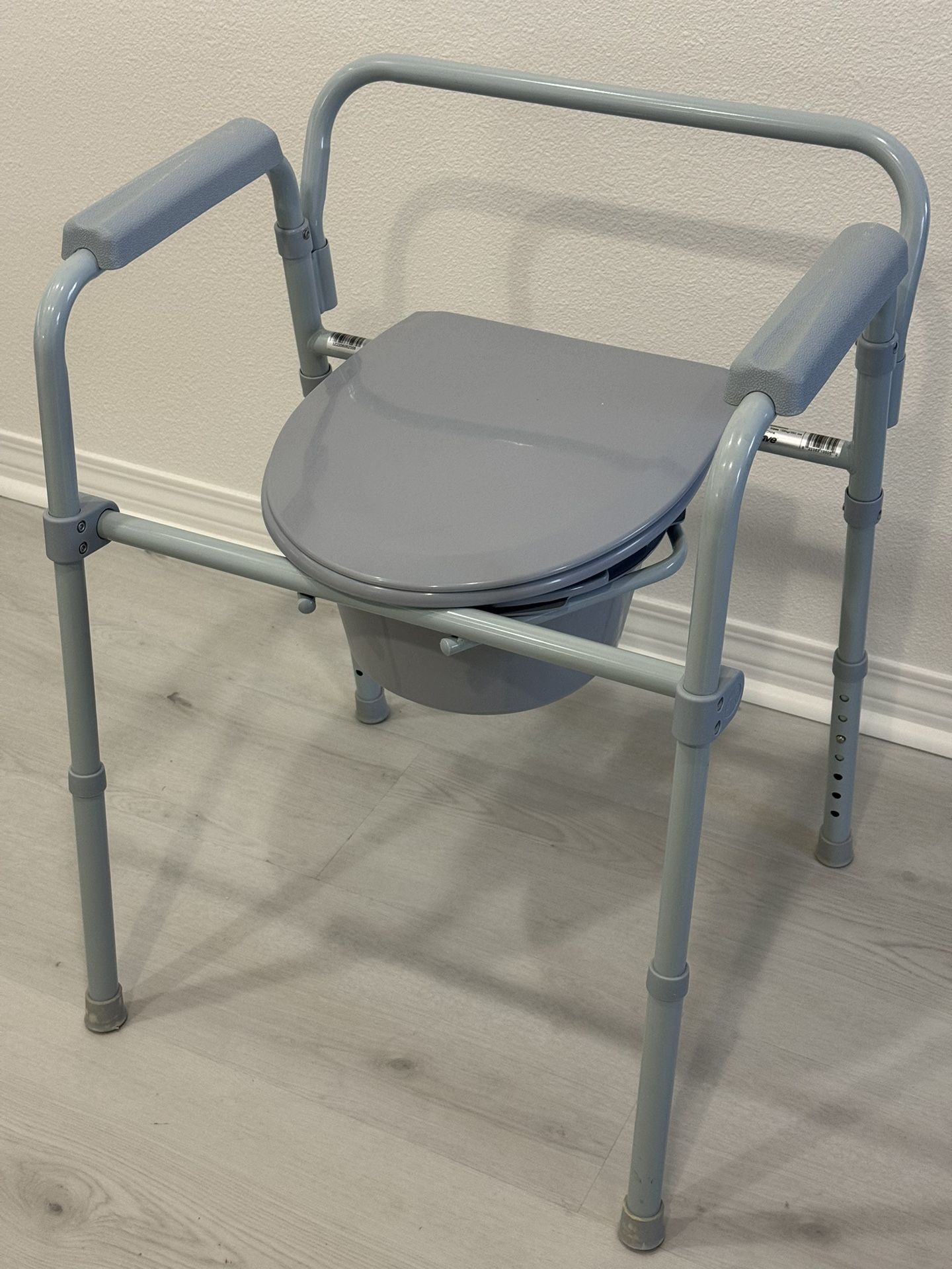 Complete Bedside Medical Toilet Brand New - Never Used Folds easily when not in use Purchased before surgery after a motorcycle accident Just finished a remodel on our home and clearing unnecessary items Pickup in Chino near Chaffey College
