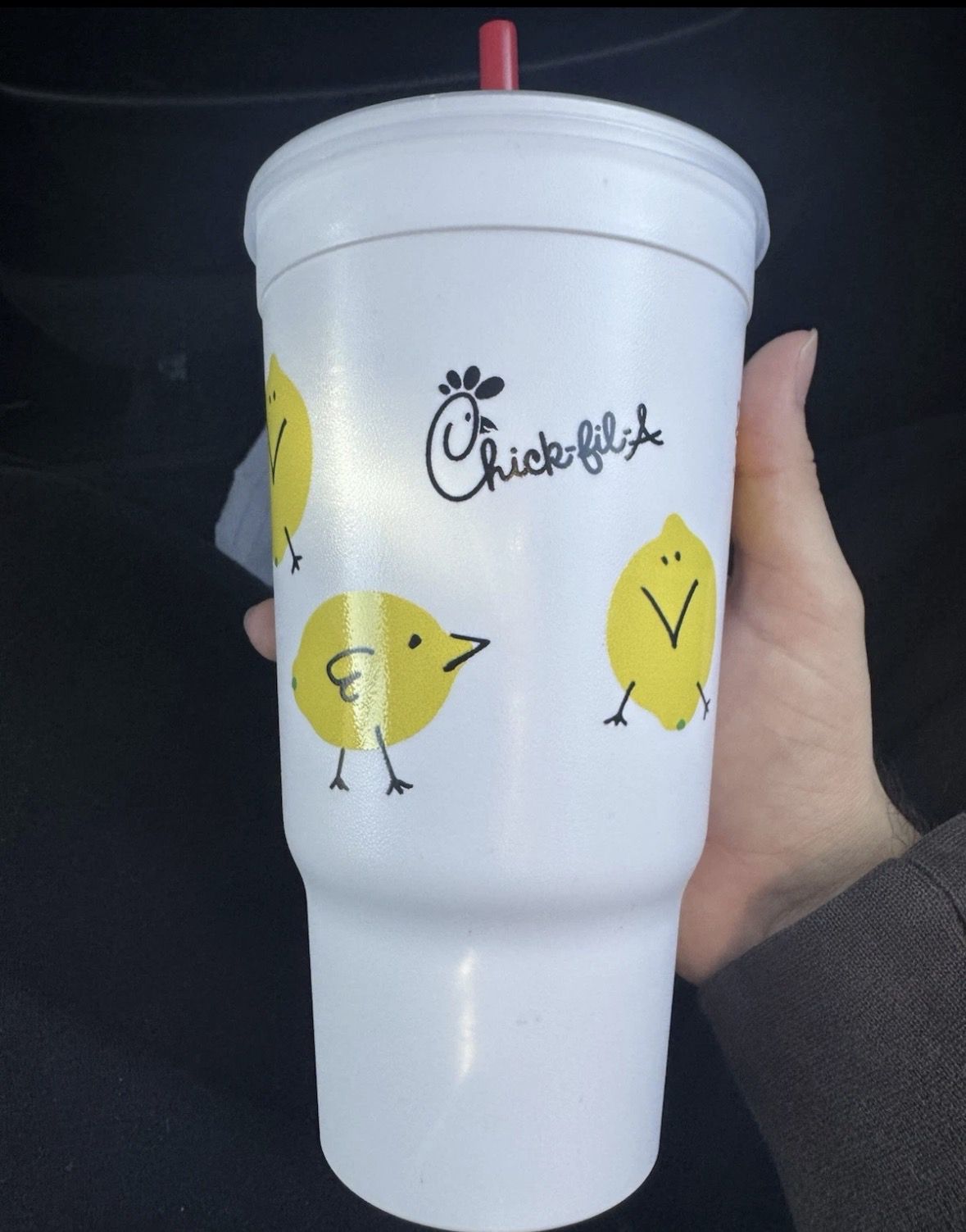 Chick-fil-A White Advertising Cup with Yellow Chick Design Collectible