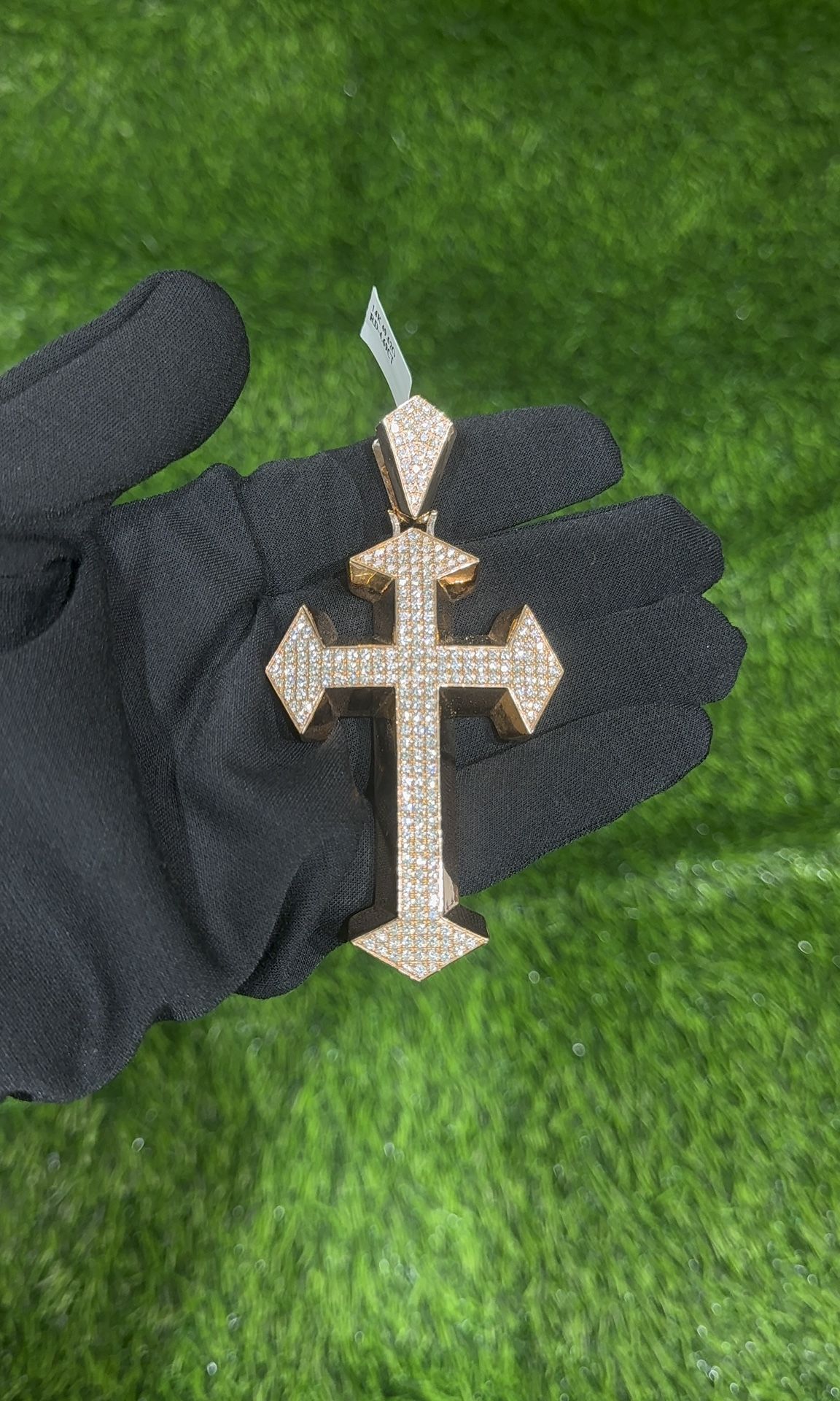 This beautiful Chrome Hearts Cross pendant has 49.62 grams of 14k gold.🌹With 4.69ct of round cut VVS stones.💎 . . Feel free to reach out with any questions.💯