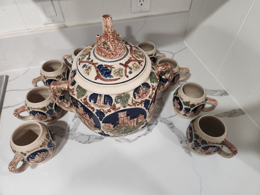 Original Gerzit" Gerz W. Germany 9 pc. ceramic Punch Bowl Set