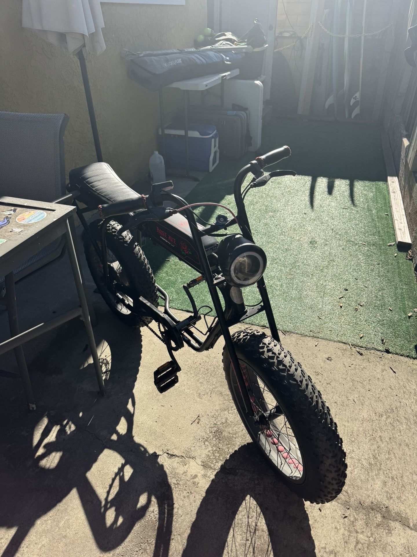 Limited Edition Super 73 Rose Ave e-bike from 2017. 584 miles on the battery. Range is ~20 miles. Brakes replaced a few months ago. Large headlight and seat modifications.