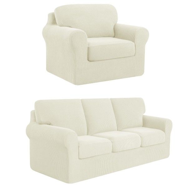SUBRTEX 3 PIECE ARMCHAIR COVER BUNDLES 7 PIECE SOFA COVER STRETCH COUCH SLIPCOVER WITH SEPARATE BACKREST COVERS AND CUSHION COVERS SLIPCOVER SETS FOR LIVING ROOM?SMALL+LARGE,IVORY?