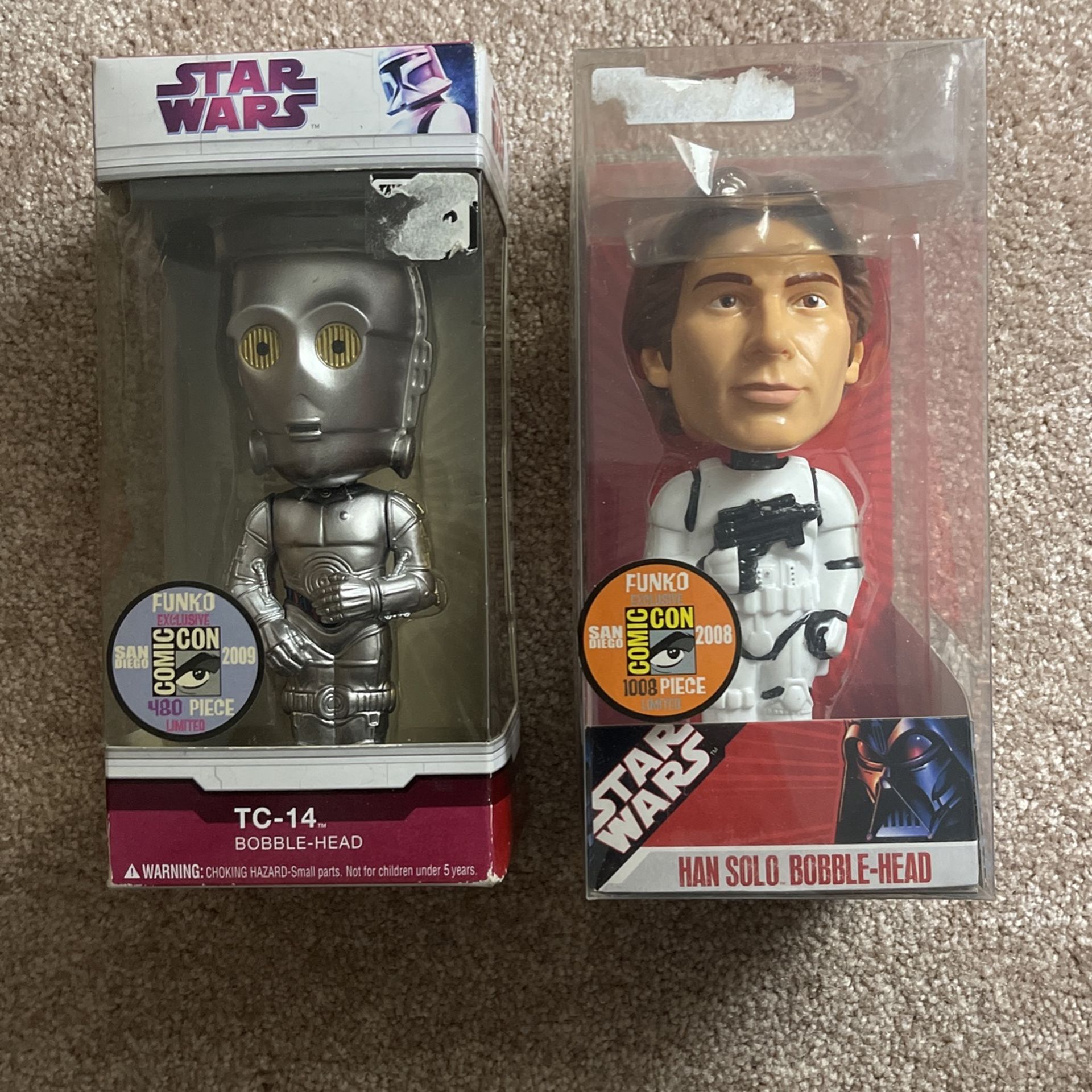 Han Solo & TC-14 bubble head  Funko comic con  they’re available for pick up only