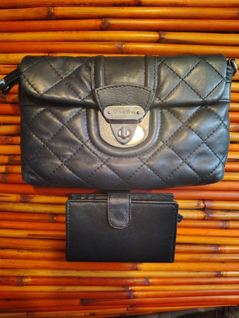 Calvin Klein Quilted Flap Crossbody Mini Bag Clutch Purse Lambskin Leather+ New London Stitch wallet. Strap not included.