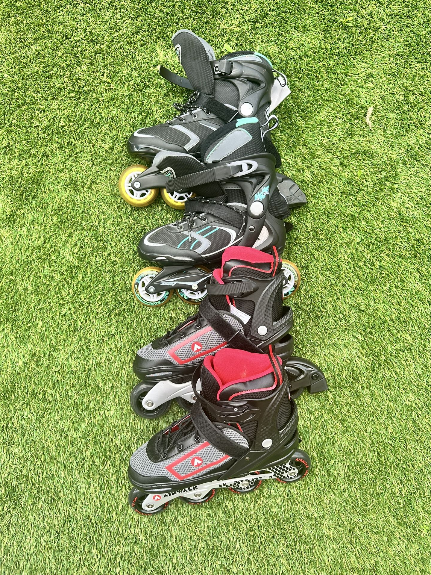 Selling a pair of high-quality inline skates in excellent condition! • Brand: Airwalk and another blaidrunner • Condition: never been used, no visible damage • Features: Adjustable straps, durable wheels, comfortable inner padding for support • Sizes: 8 Perfect for outdoor activities, beginners, or experienced skaters looking for a smooth ride. Price: 40 for both Pickup or shipping options available.