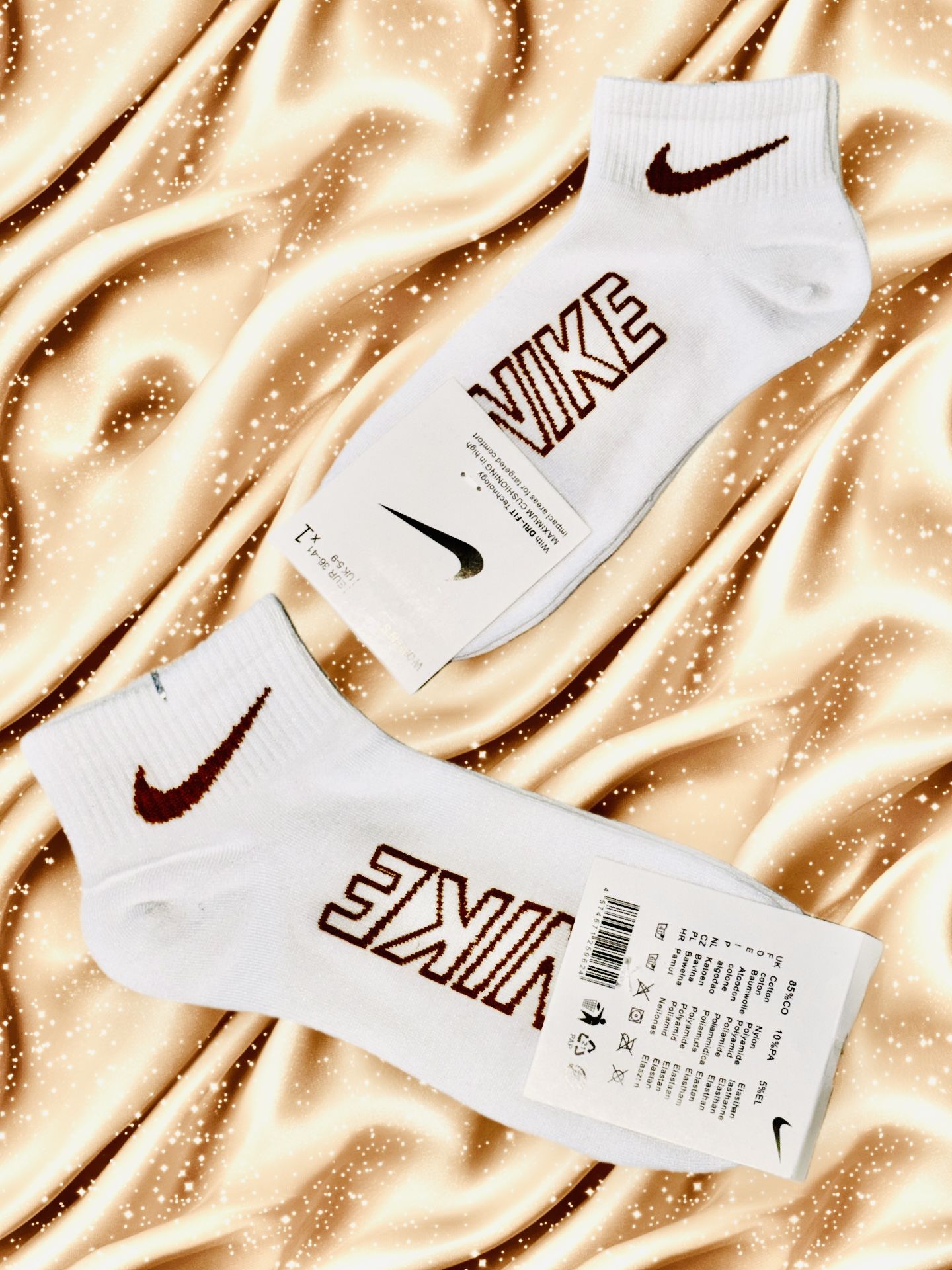 White with brown color One pair of socks Nike size EUR 36-41 UK 5-9 Price $5