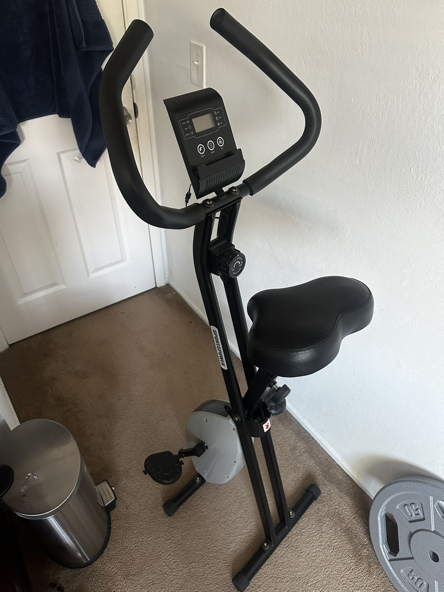 Can be folded and stored away easily. The tension can be adjusted at the turn of a dial to suit your preference. Item has been used for 2 weeks at most and atm I do not have any use for it. Selling as is.