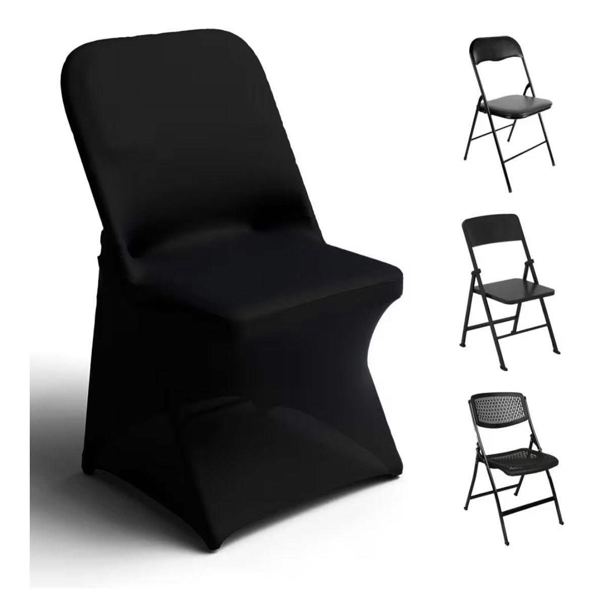Spandex Folding Chair Covers 100 Pcs Universal Fitted Stretchy Dining Chair Slipcovers for Wedding Party Banquet Flat-Front Chair Cover (Black)