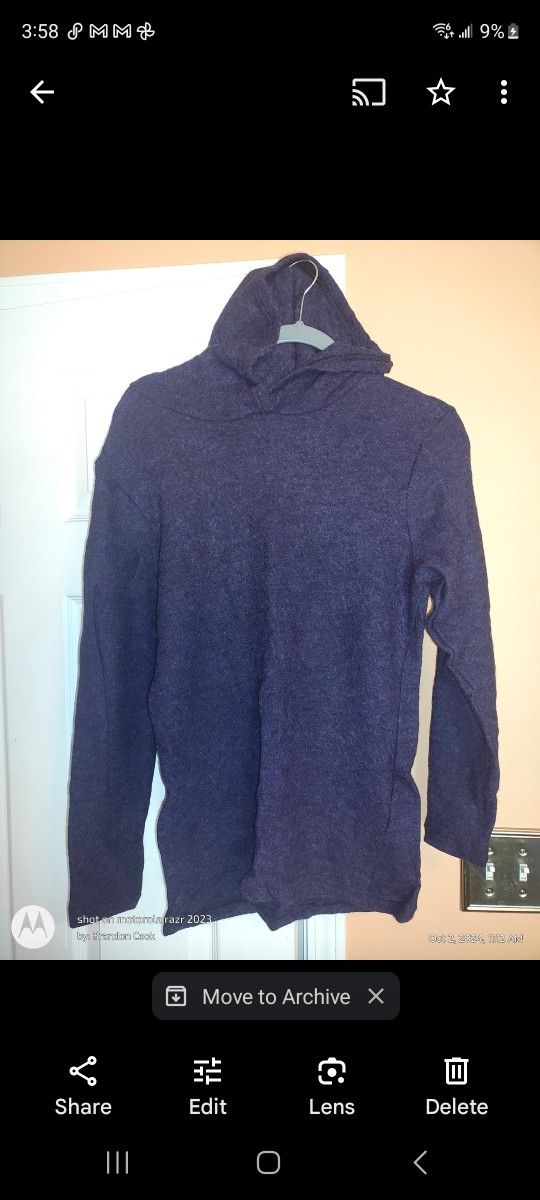 Womens Large "Plum" (or) Dark Purple, Thick Alpaca Hoodie. Made w/ 80% Alpaca Fur from Peru, and 20% recycled nylon. Very lightweight, and moisture-wicking as well. Keeps you very warm, perfect for upcoming winter season. These hoodies are on many sell sights for sale between $120-$150 dollars. I have a good many and don't have time to sit on them to sell them for that price. Mine are priced about 65% off of those above prices i mentioned. Also have other colors and sizes, as well as beanies, and t-shirts, and a few sweaters. Message me for more info on other products! Thanks and have a great day!