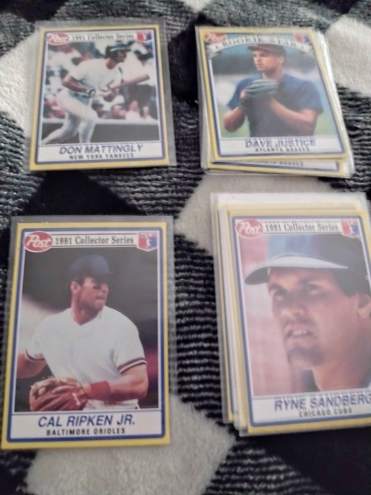 Nolan Ryan, Dave Justice. Ryne Sandberg Rookie card for Post. Kevin Maas, Barry Larkin, Darryl Strawberry, Cal Ripken Jr, Don Mattingly. Some duplicates 23 cards total Cash porch pickup Redmond.