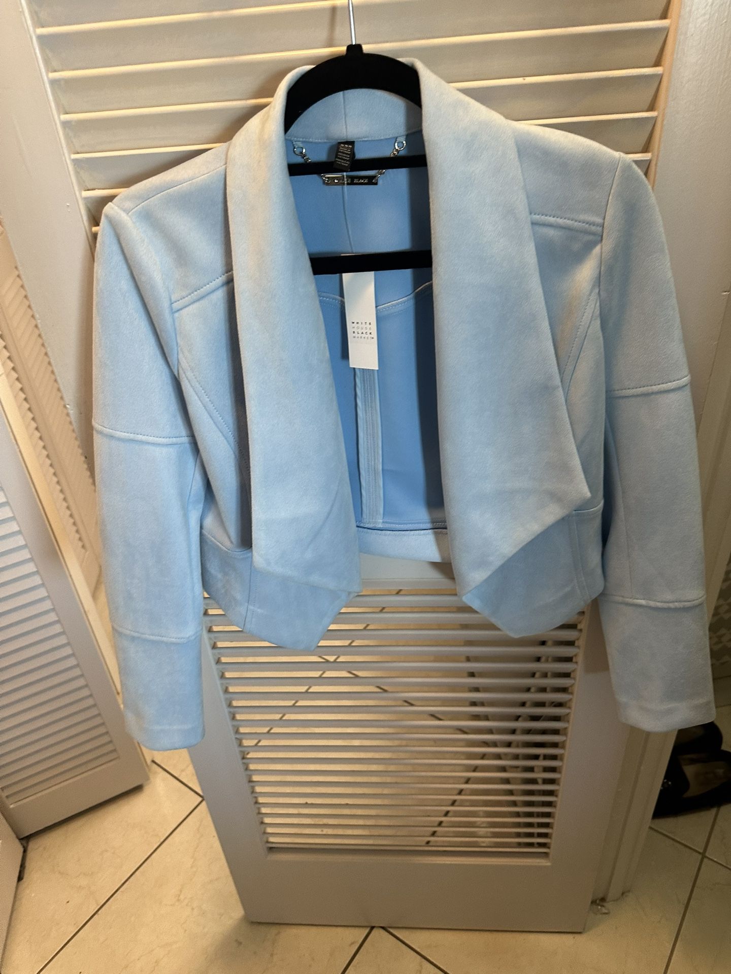 White House Black Market , new with tags Size xxs Super cute light blue suede jacket