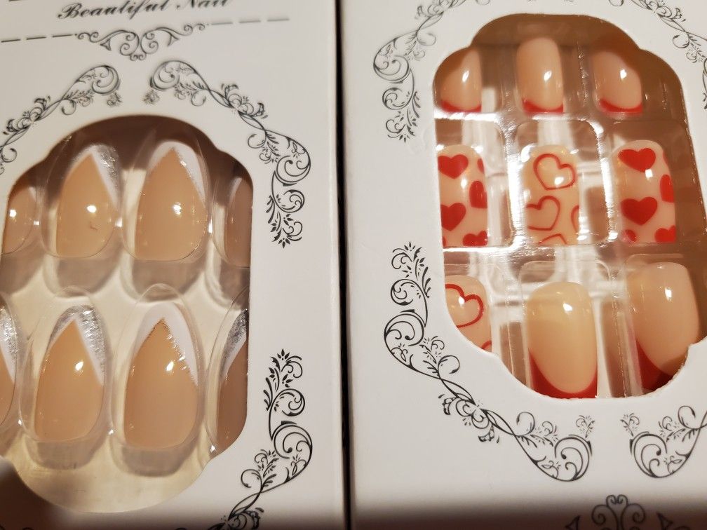 All are New I got too many to post all the Details These pictures are the styles I have Each Package Contains - 24 Fake Nails - Nail Glue or Jelly Glue - Mini File - Cuticle Stick Questions please message me or if u just want to come and look at what I got that's fine too all Nails that I post on my page that say Mix and Match are $2.00 each or 3 for$5.00