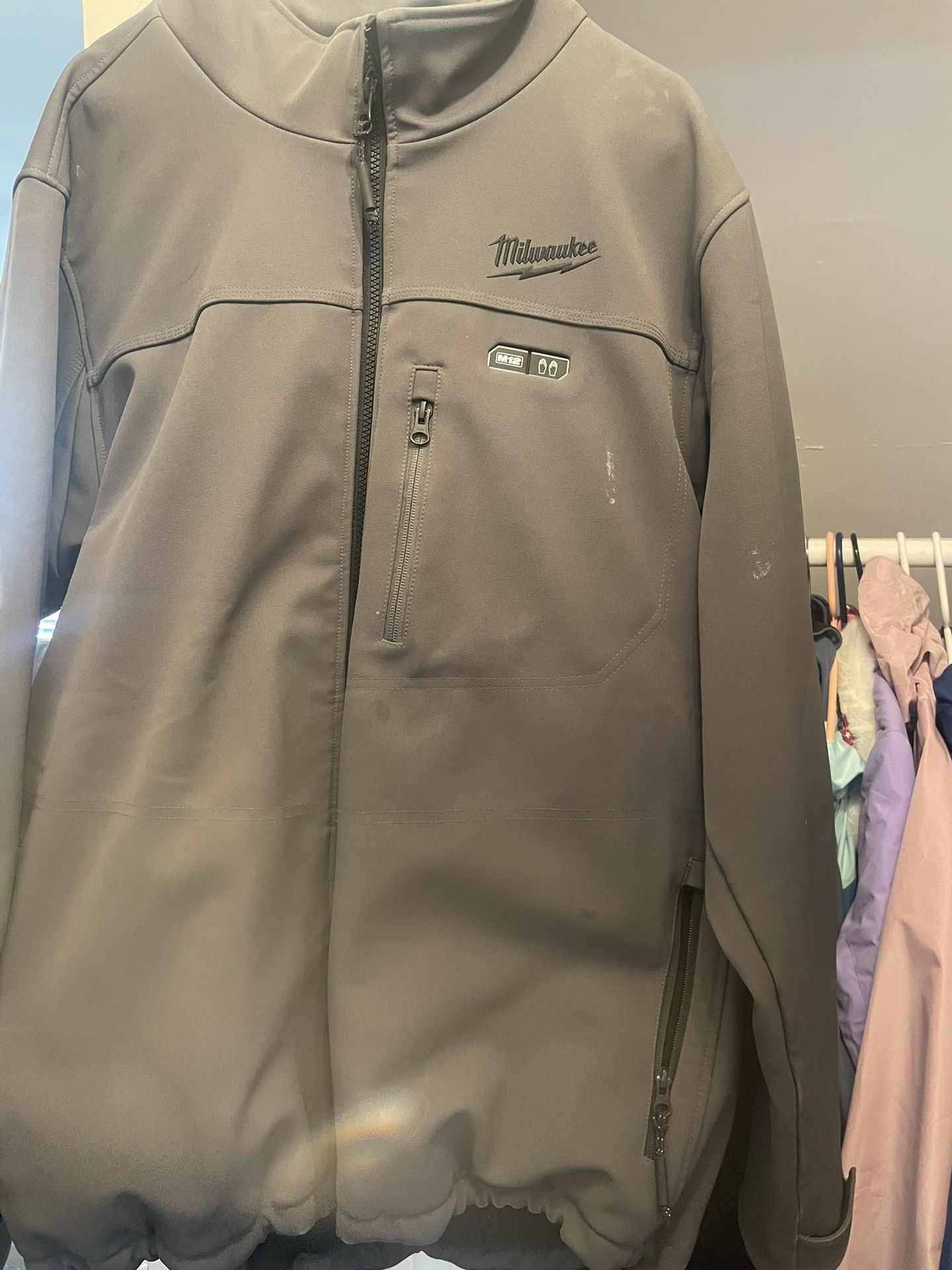 Uses m12 batteries which aren’t included. Jacket is worn but in great condition aside from a few small stains.