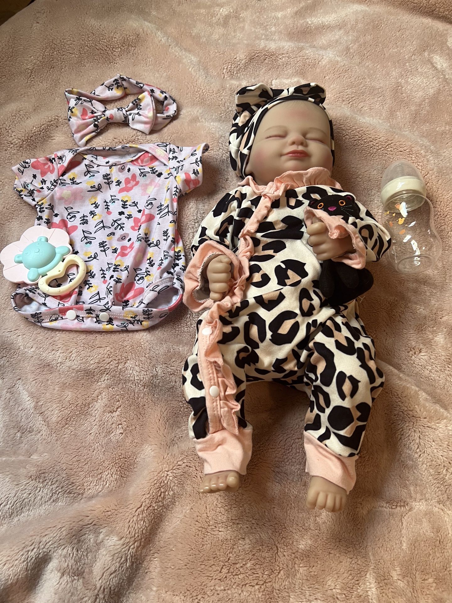 Comes with 2 outfits, a bottle, and a stuffed animal.