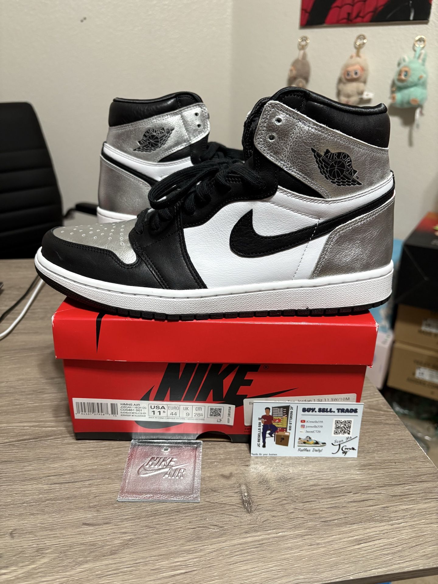 Size 11.5W / 10 Mens - Air Jordan 1 High Retro Silver Toe Black