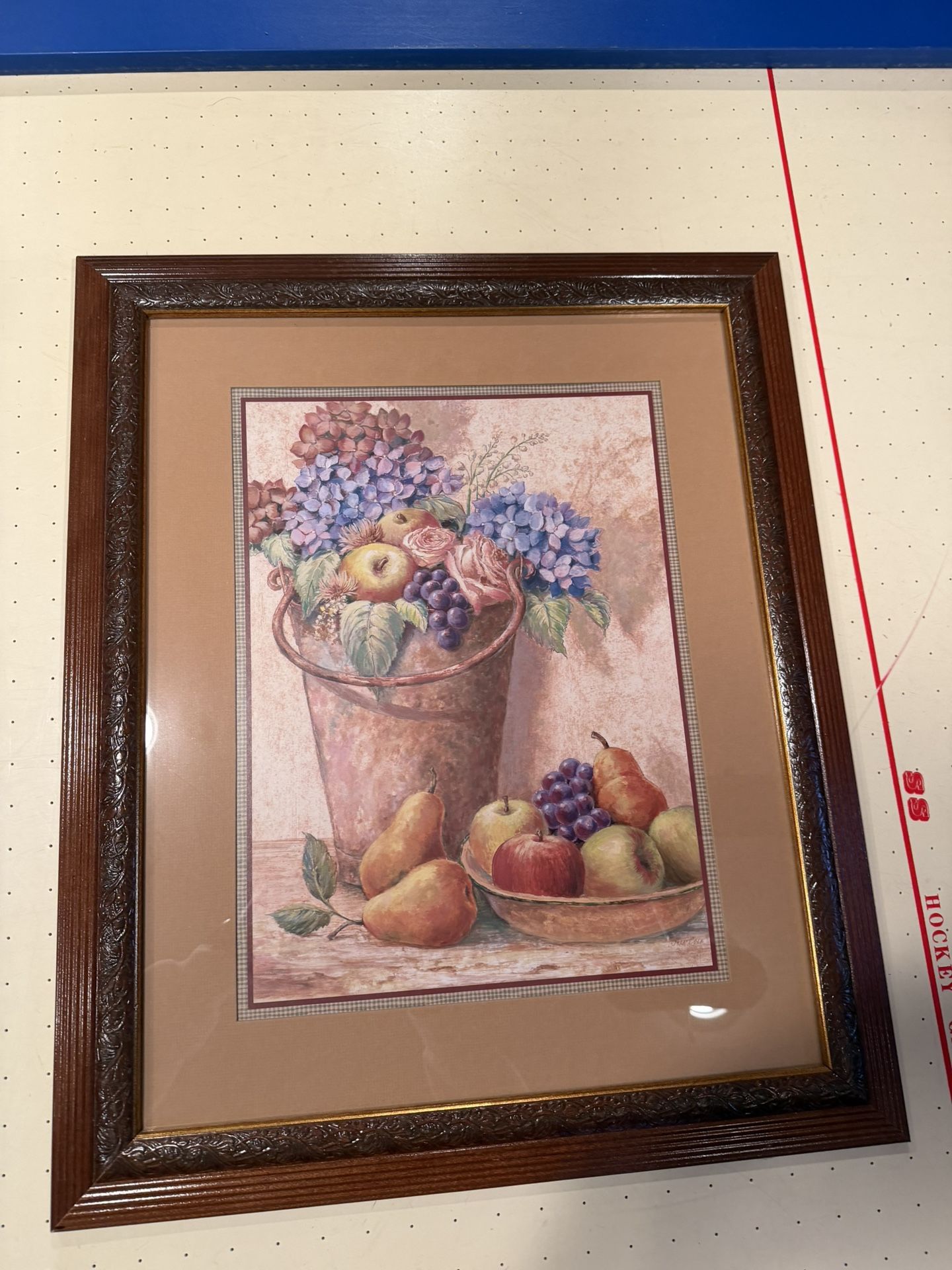 See description in photo Wood frame with glass cover Width - 19 1/2 inches Height - 23 1/2 inches