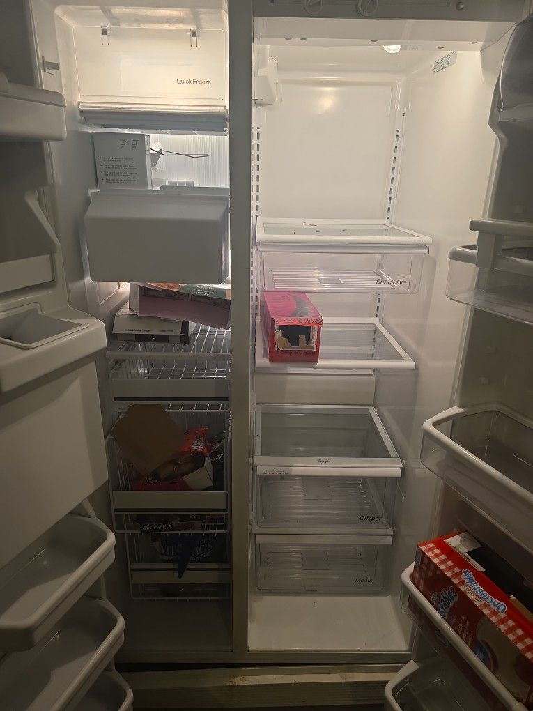 Selling our whirlpool Fridge thats been in our garage. Really clean on the inside and works like new. Not sure if the water/ice part works since we dont use it