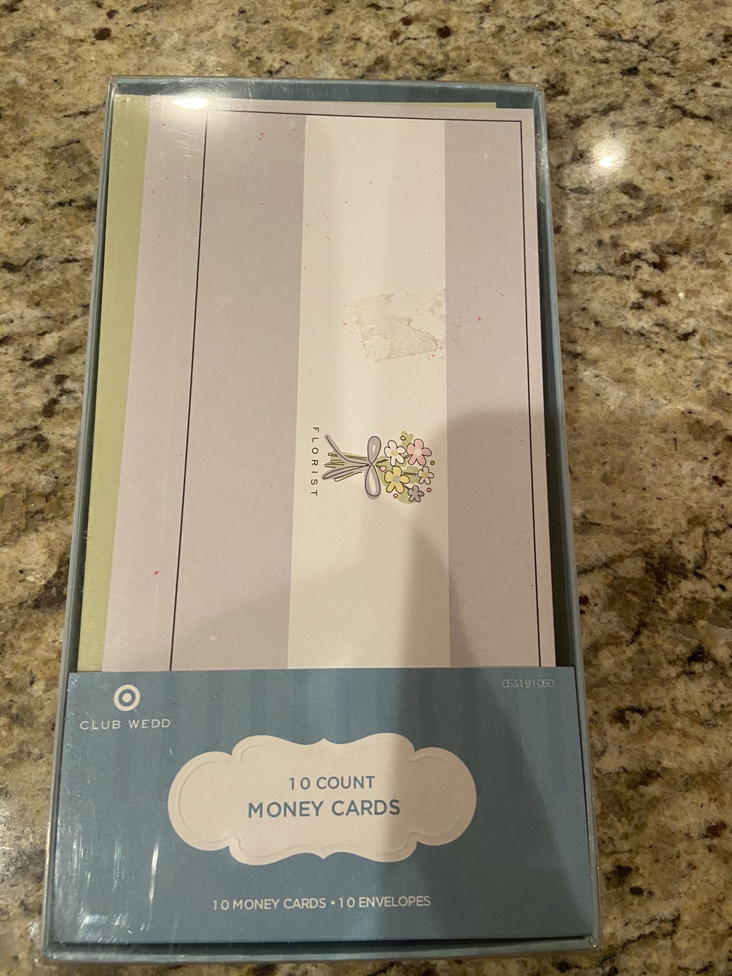 10 Money Card Thank you’s for you wedding day. Inside Message... THANK YOU FOR BEING A PART OF OUR SPECIAL DAY. This box has everyone covered and will help keep you organized. I have 2 boxes and selling each box for $5.00.
