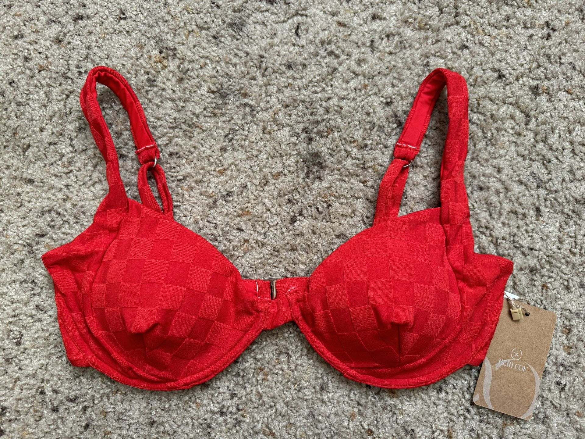 Berlook red checkered underwire bikini top, women’s size Large, new with tags and never worn. Just didn’t fit me right.