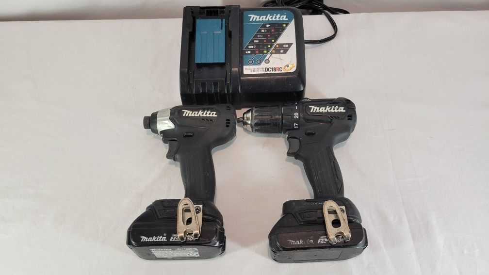 Makita Sub Compact 18V Brushless Set, The set comes with two 2ah batteries and a charger. They are clean and work great.
