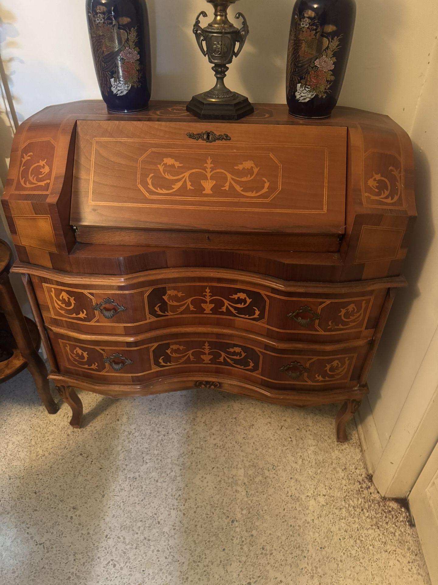 Italian Ladies Writing Desk with Marquetry Inlay. With key. Any questions just ask