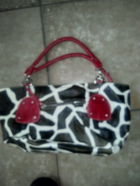 Women’s Black/Red/White Animal Print Satchel/Dbl. Handles Handbag Purse leather new no tag.. very clean Please see my other offers I'm also in Arleta and Redondo Beach thank you 😃