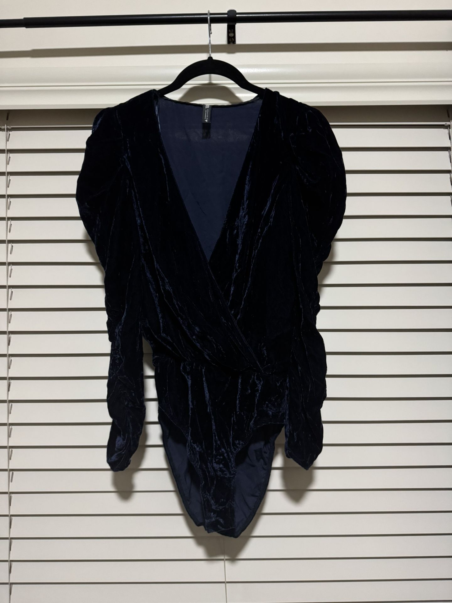 Zara Blue Velvet Puff Sleeve Bodysuit