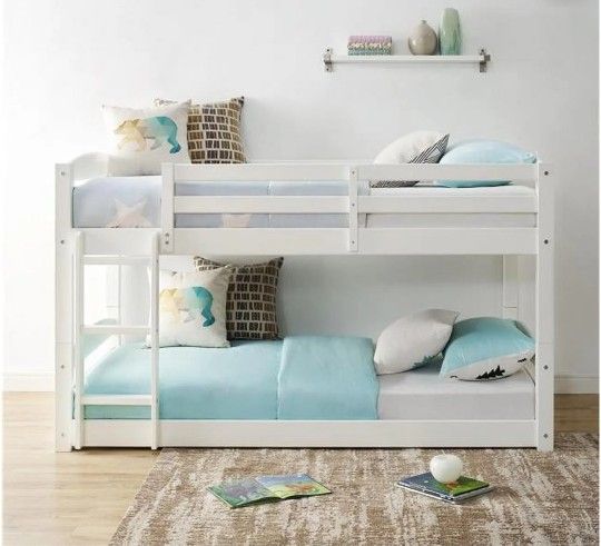 New Inbox Twin Over Twin Bunk Bed Wood White mattress not included