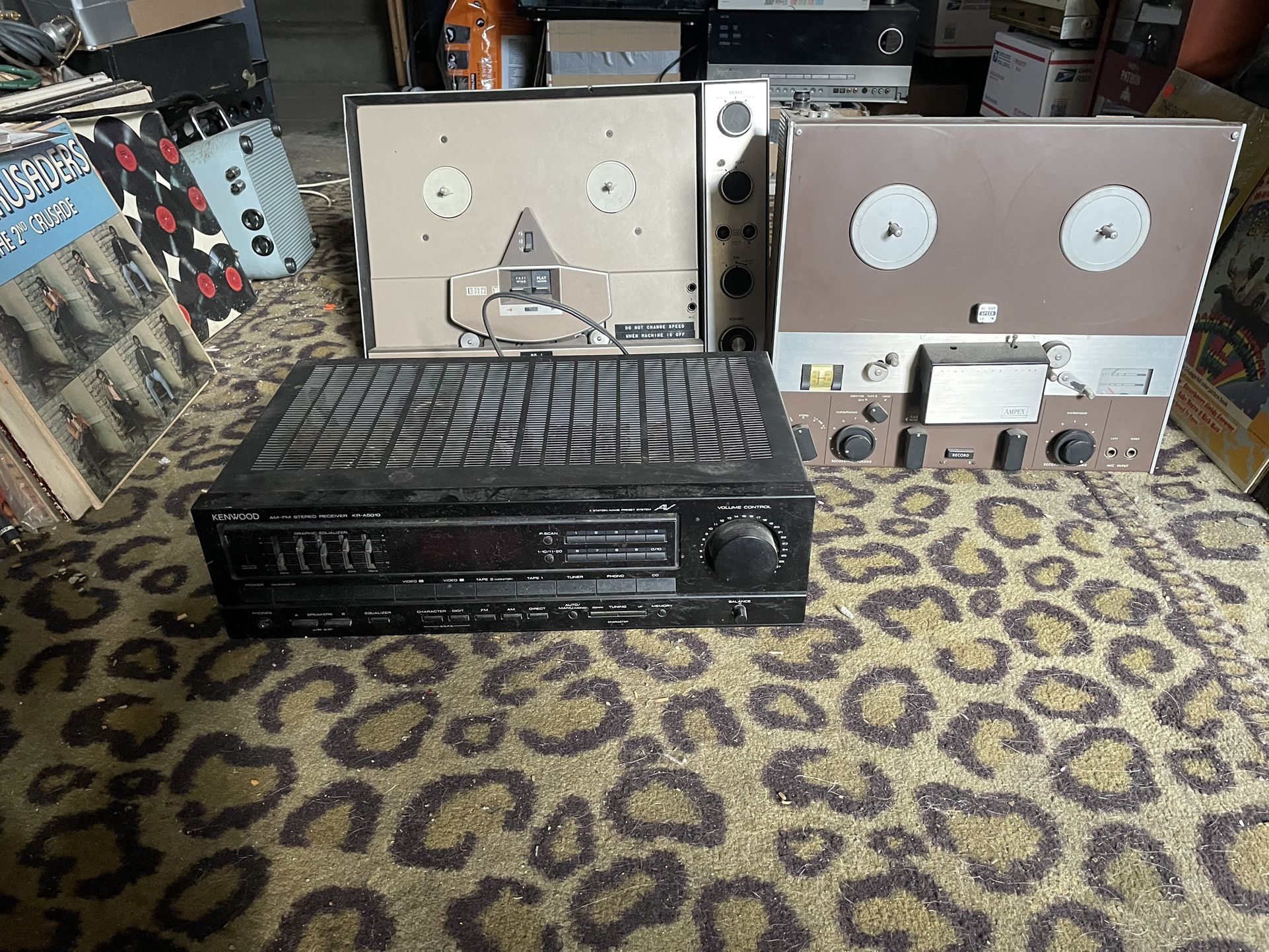The Ampex unit does not have tubes and I do not have any reels to test anyway. The Kenwood amp was working when I put it away several months ago, but when I tried to plug it in to test for the sale, it didn’t work so I assume it’s just a fuse or something minorbut anyway all three items $30