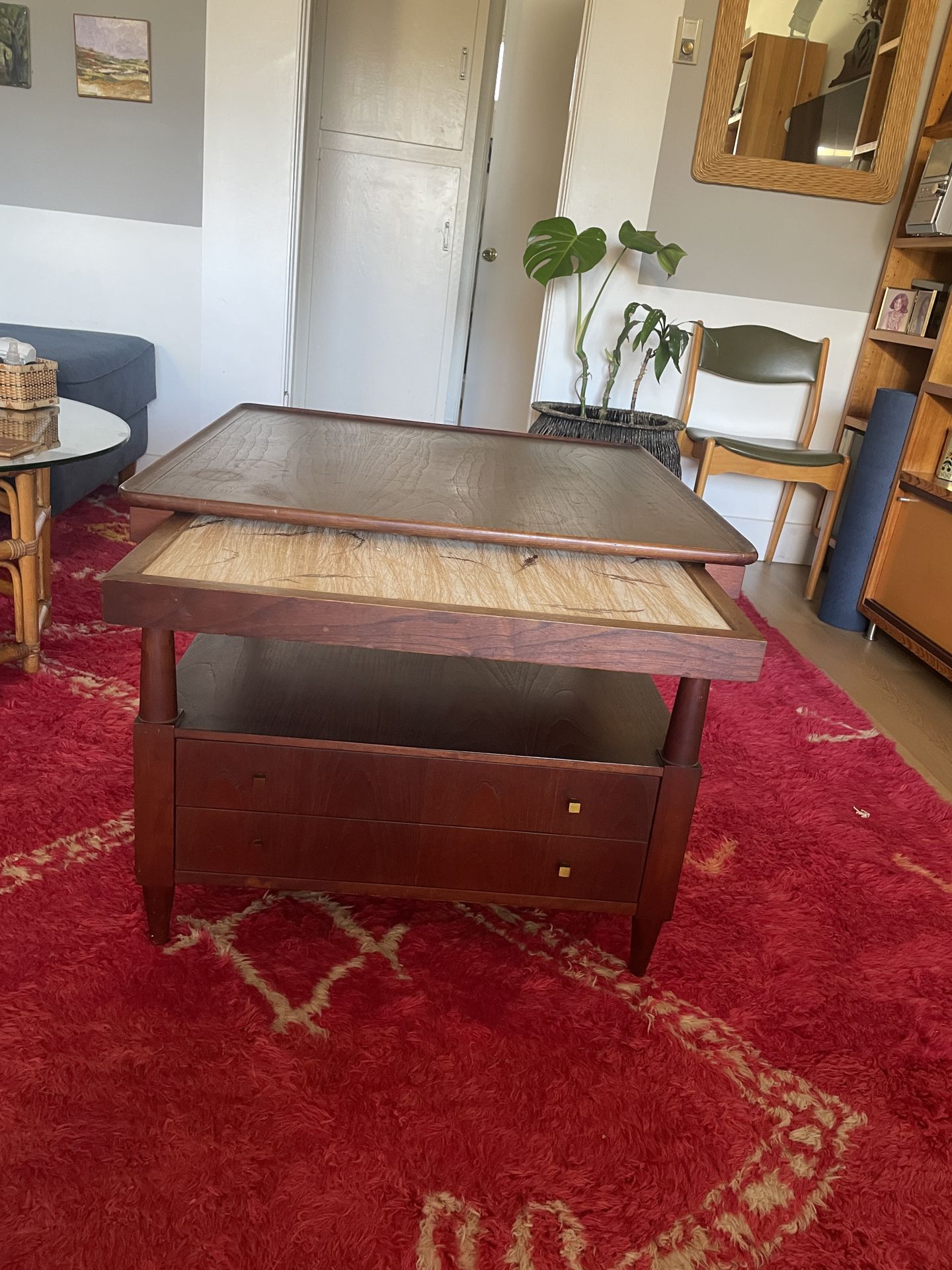 William Berkey Furniture co. John Widdicomb End table Removable shelf that turns into a table 2) Drawers 27"x27"x22 1/4" h